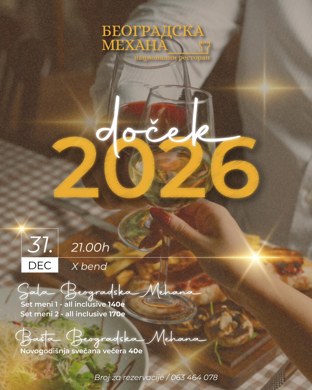 U našem restoranu Beogradska Mehana novogodišnja noć ima posebno značenje. Zato smo pripremili doček koji spaja tradiciju i dobar provod.